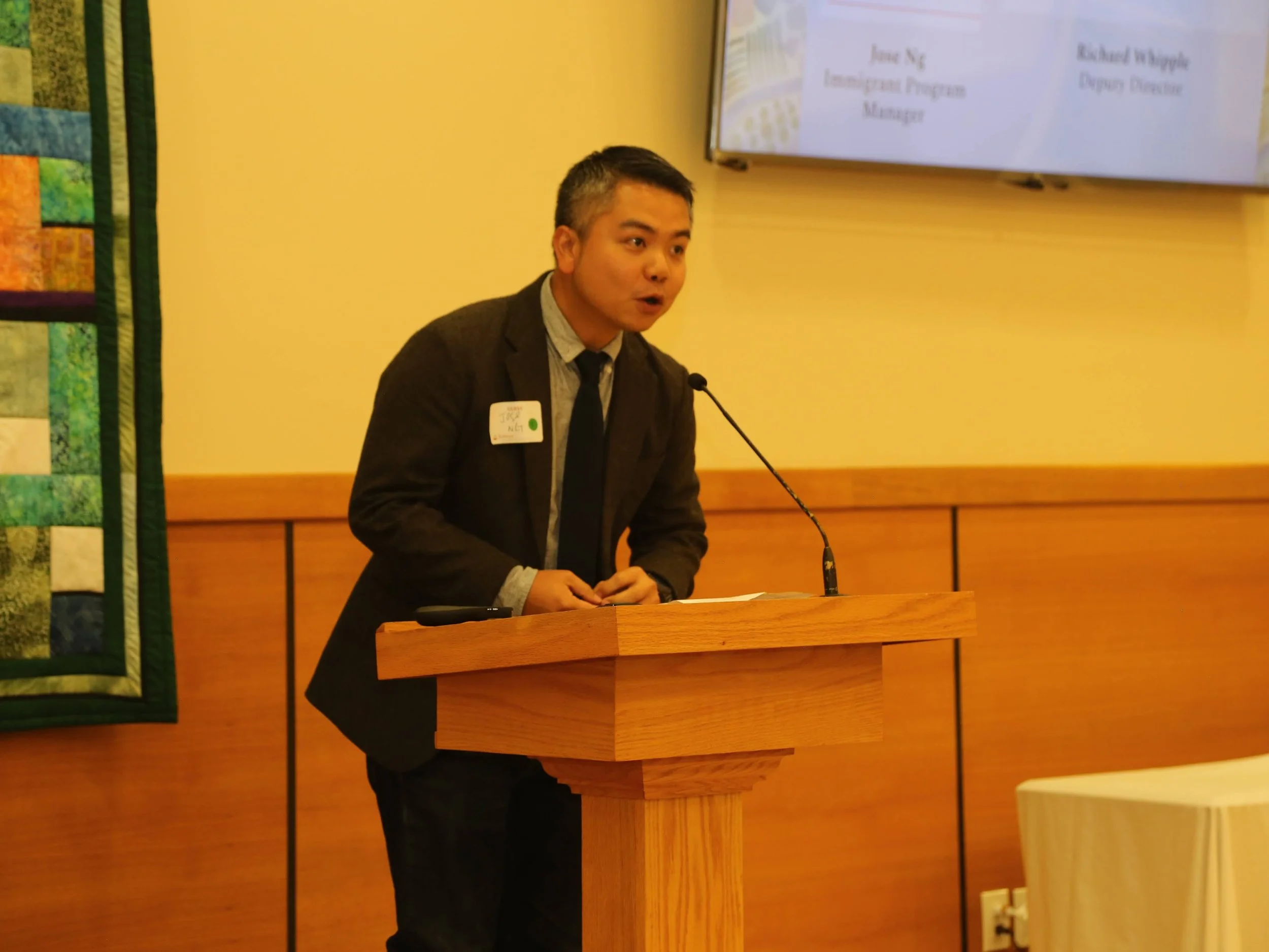 Good evening, everyone. My name is Jose Ng, and I work at Chinese for Affirmative Action as the Immigrant Rights Program Manager. Being here today just reminds me about the very first time that I brought our clients to this church where we got to meet Amy and Clare—it’s hard to believe that was almost ten years ago.